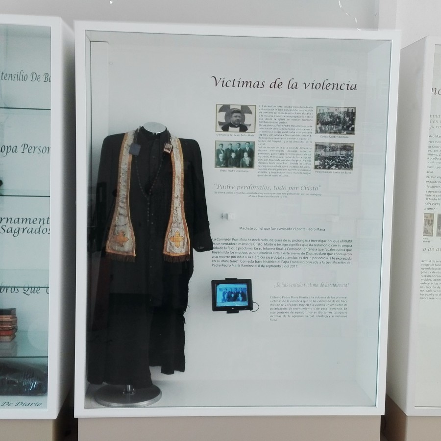 Reliquias de segundo grado del Beato Pedro María "El Mártir de Armero": Fotografías, elementos personales y libros de su biblioteca personal. Ornamentos sagrados personales de sus omilías.